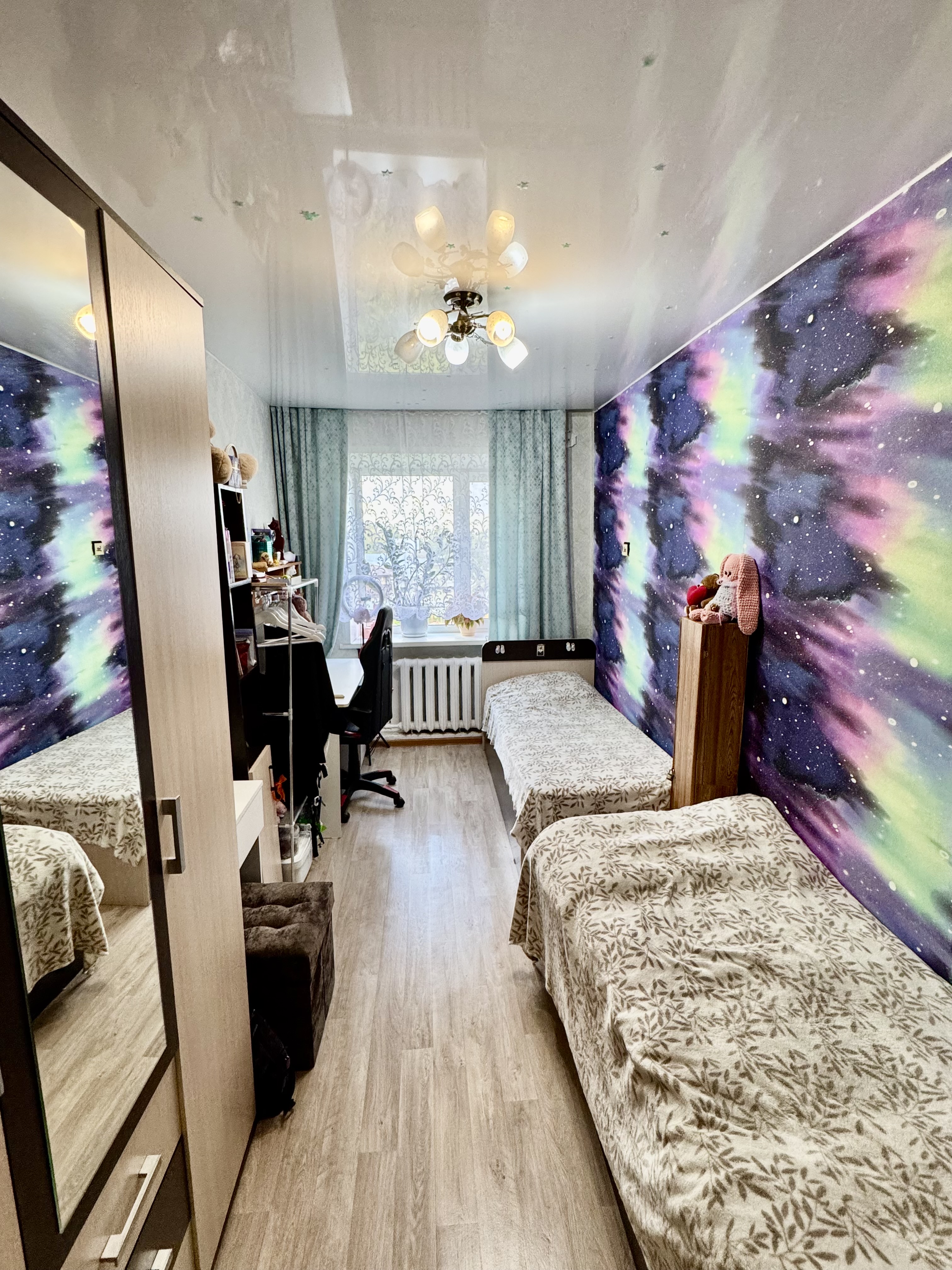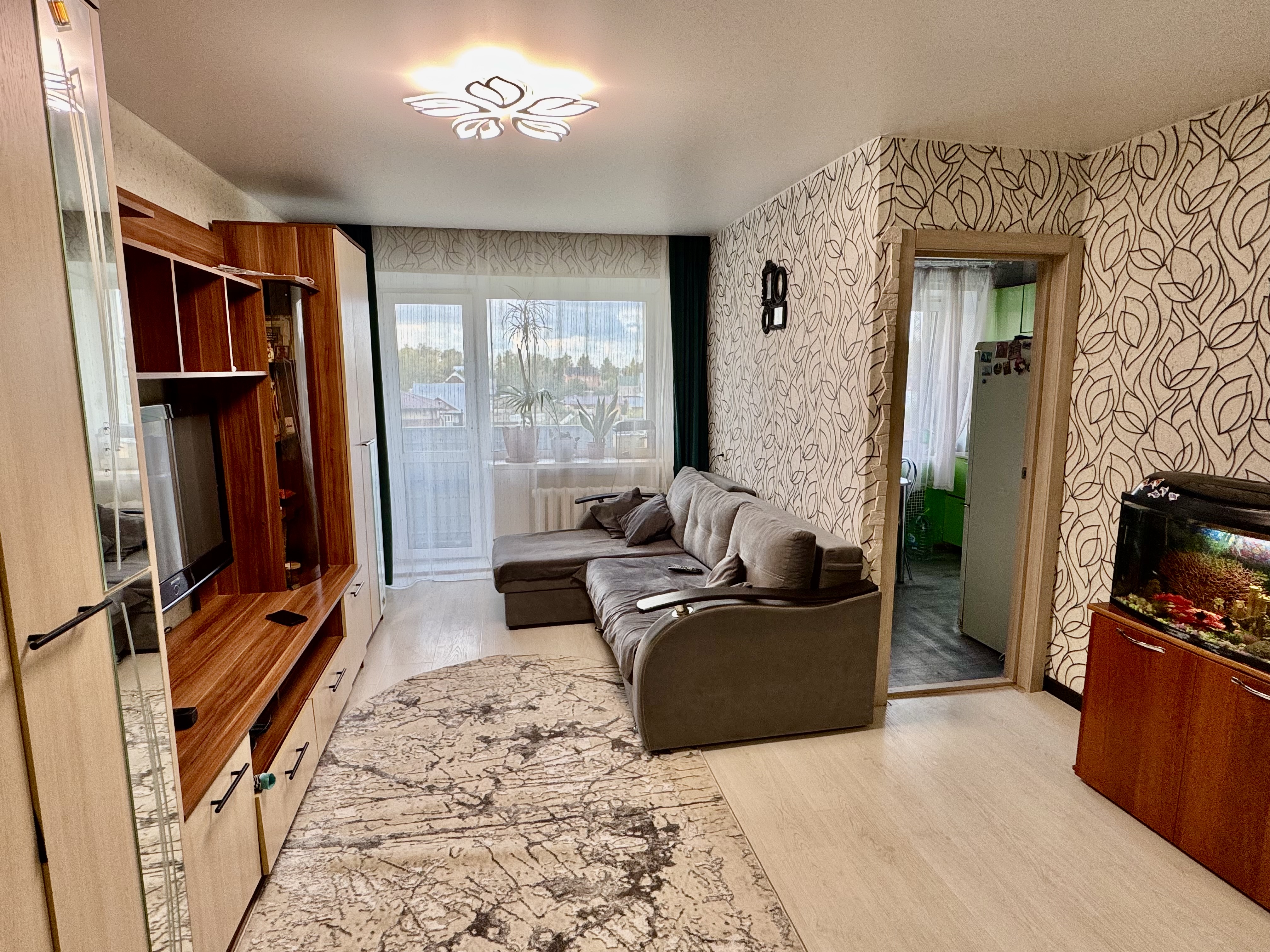 Качественный ремонт: современные пластиковые окна во всех комнатах. Напольное покрытие: ламинат в коридоре, зале и кухне, практичный линолеум в спальне