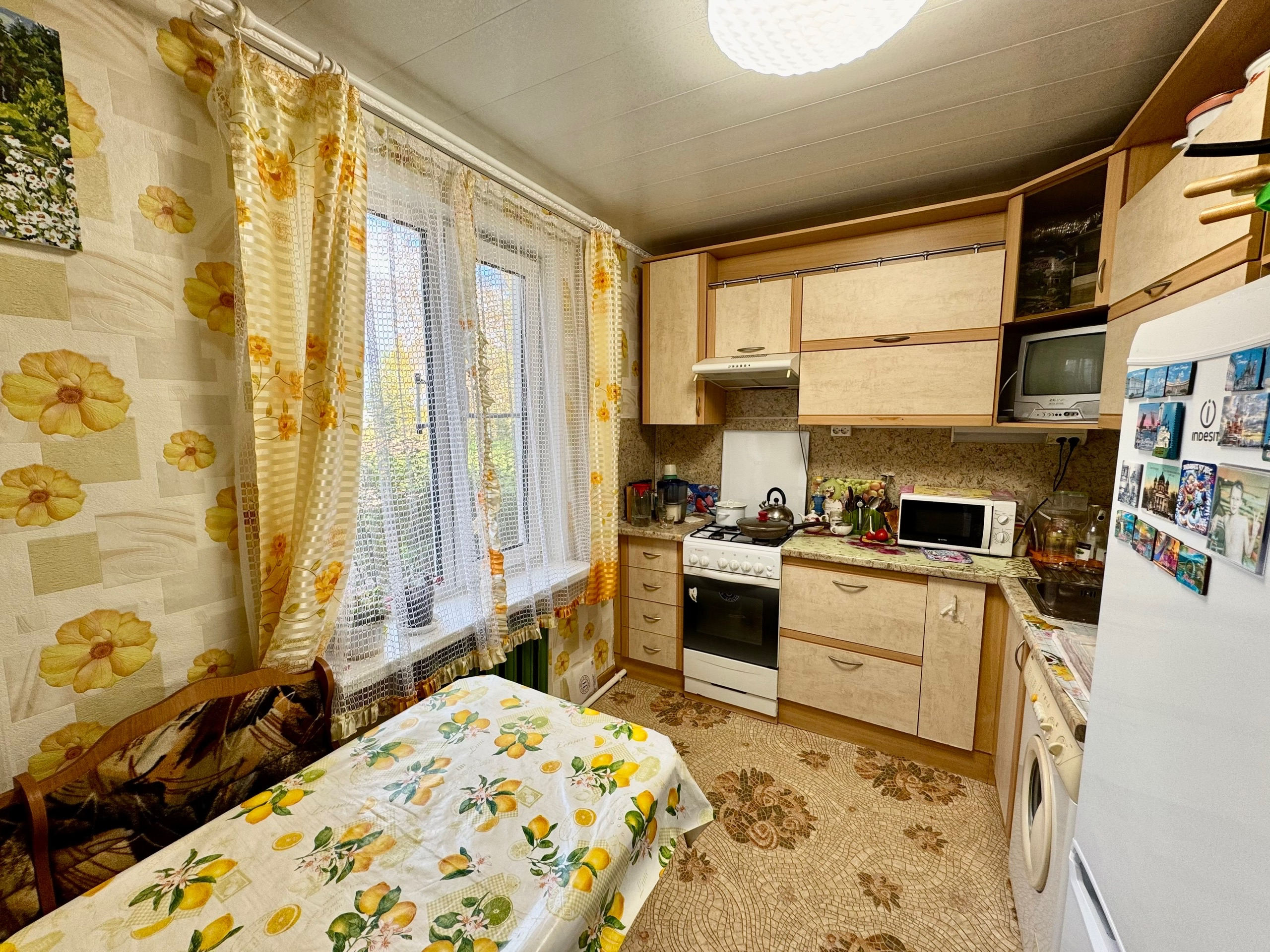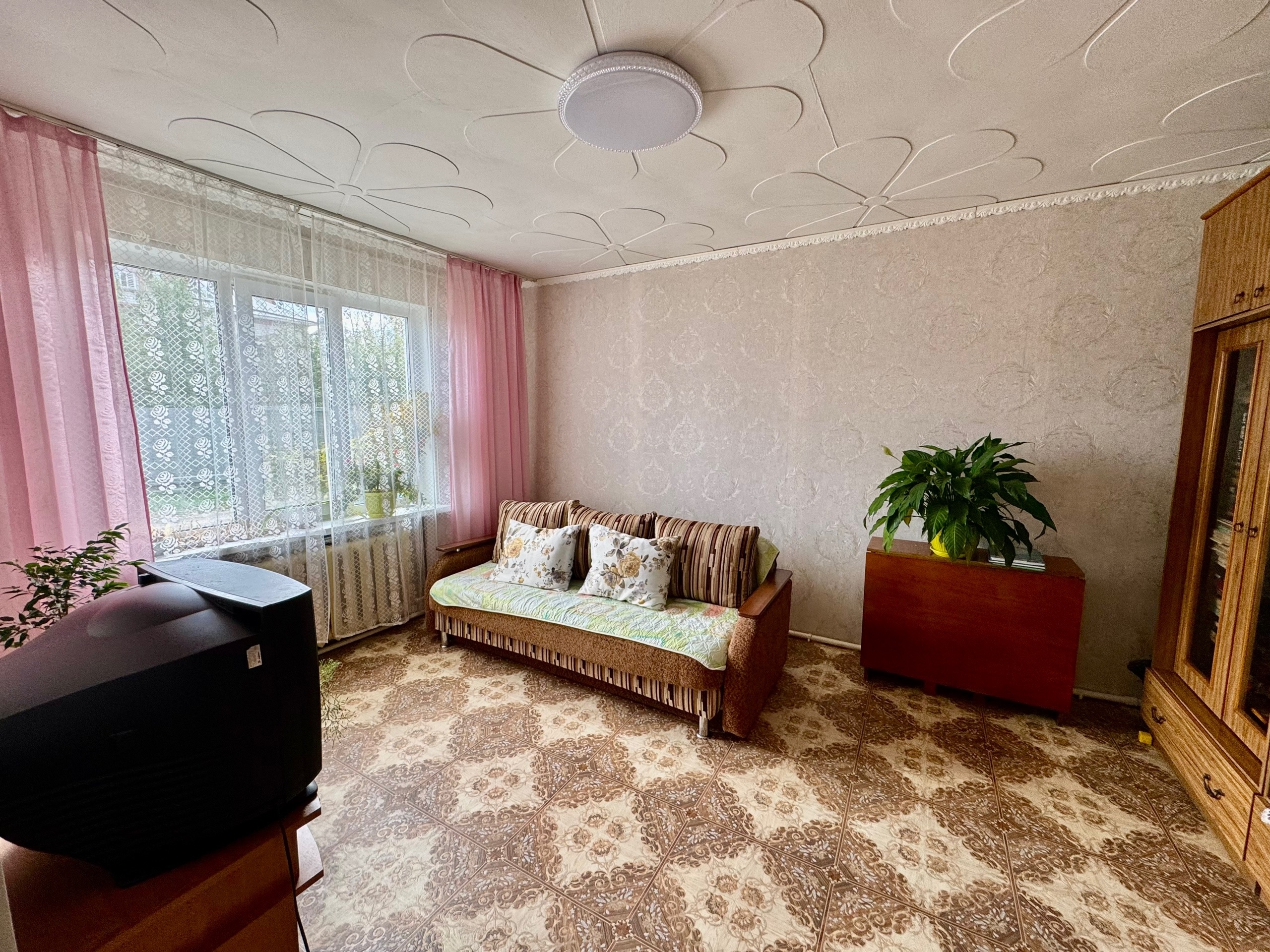 -Окна все заменены на качественные и очень тёплые пластиковые трехкамерные стеклопакеты, потолки оклеены потолочной плиткой, комнаты правильной формы и очень светлые, что обеспечивает хорошее естественное освещение. Несмотря на первый этаж, полы зимой не холодные, что обеспечивает комфорт всем членам семьи.