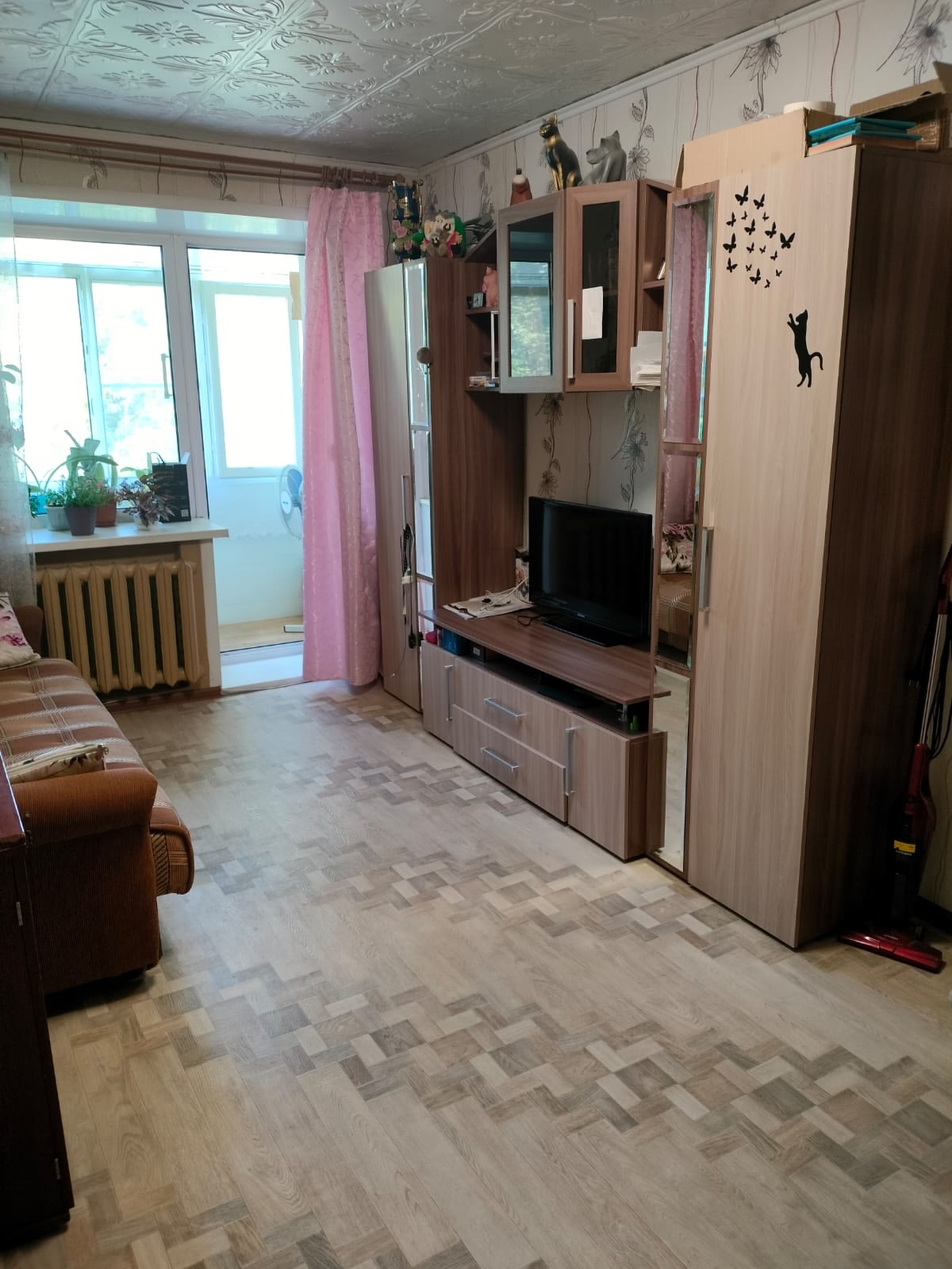 Окна в пластиковом остеклении, напольное покрытие - линолеум. Хорошие межкомнатные и входная двери. Балкон застеклен.