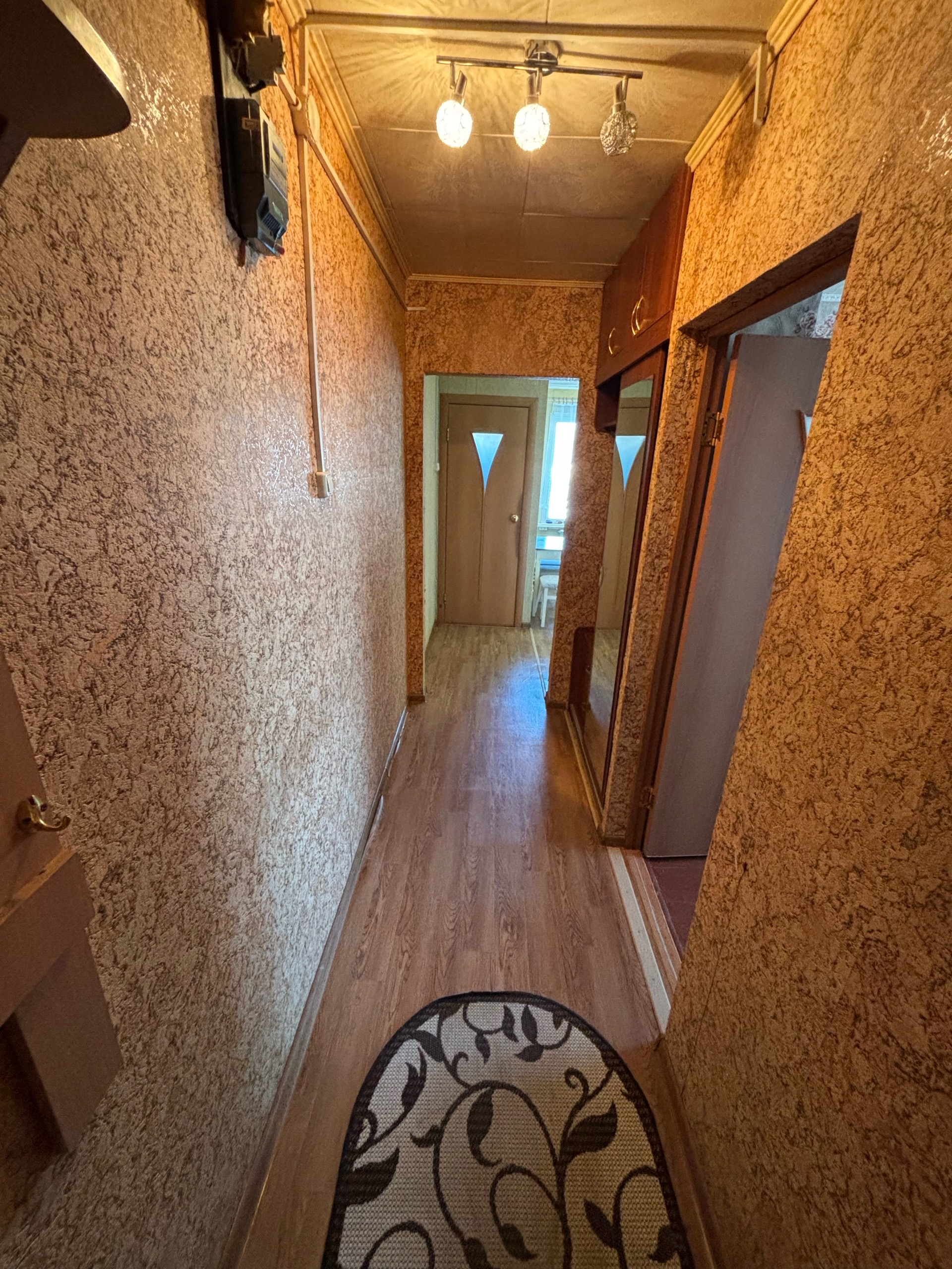 Окна все пластиковые, напольное покрытие линолеум, новые радиаторы.