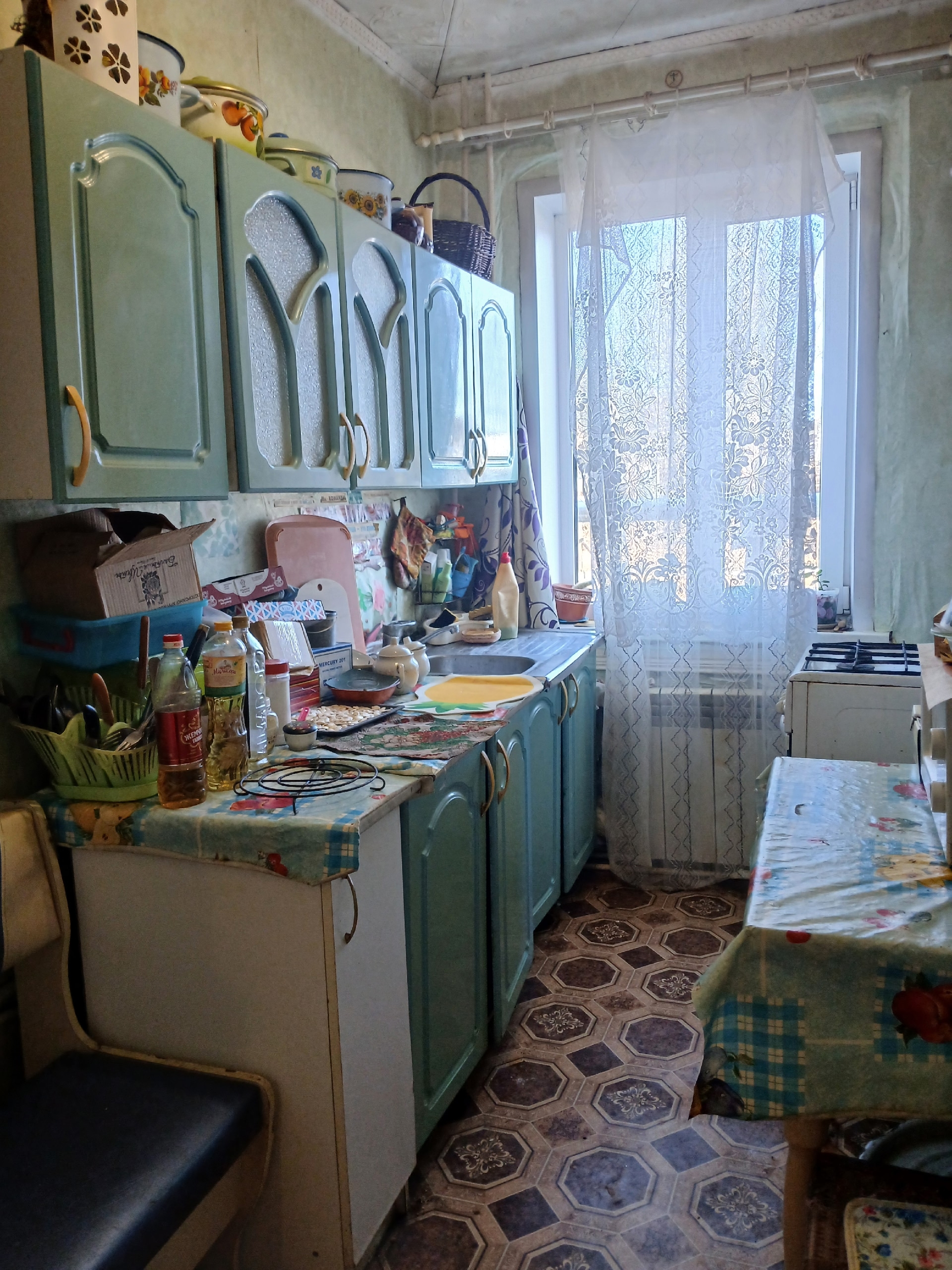 Окна заменены на пластик, напольное покрытие - линолеум.